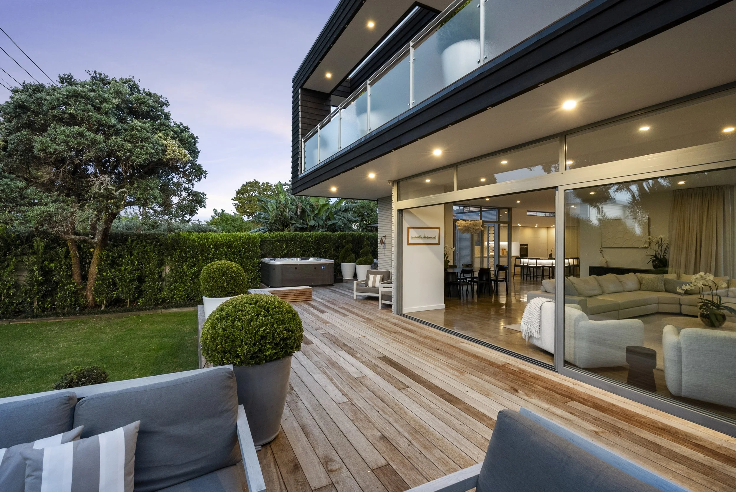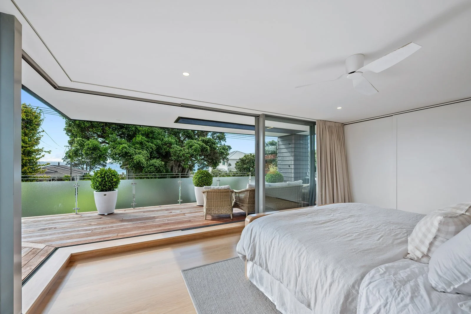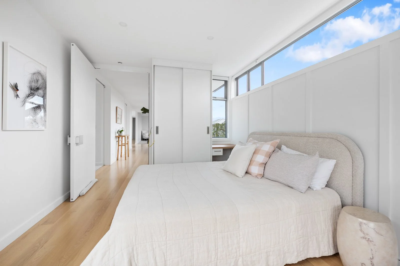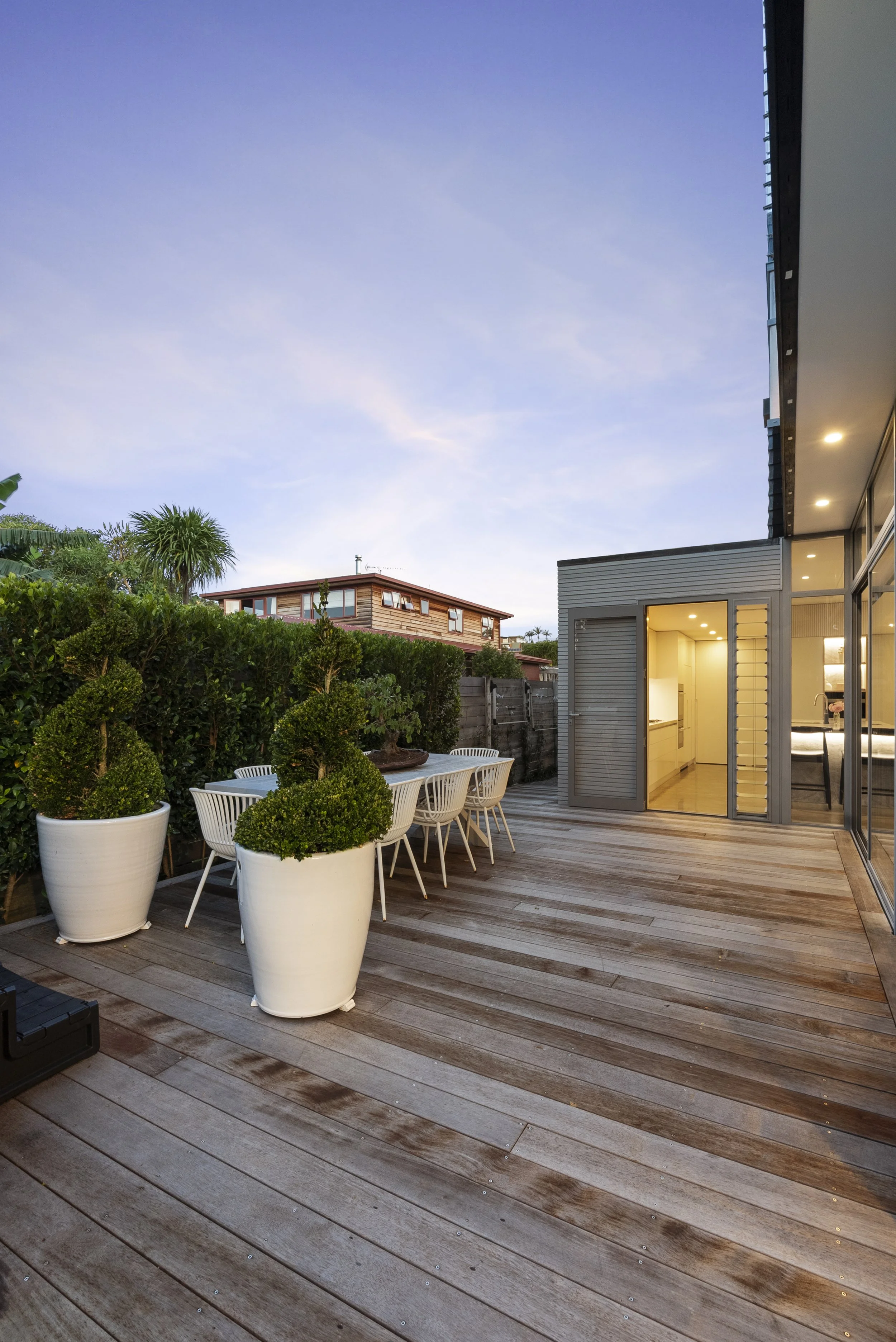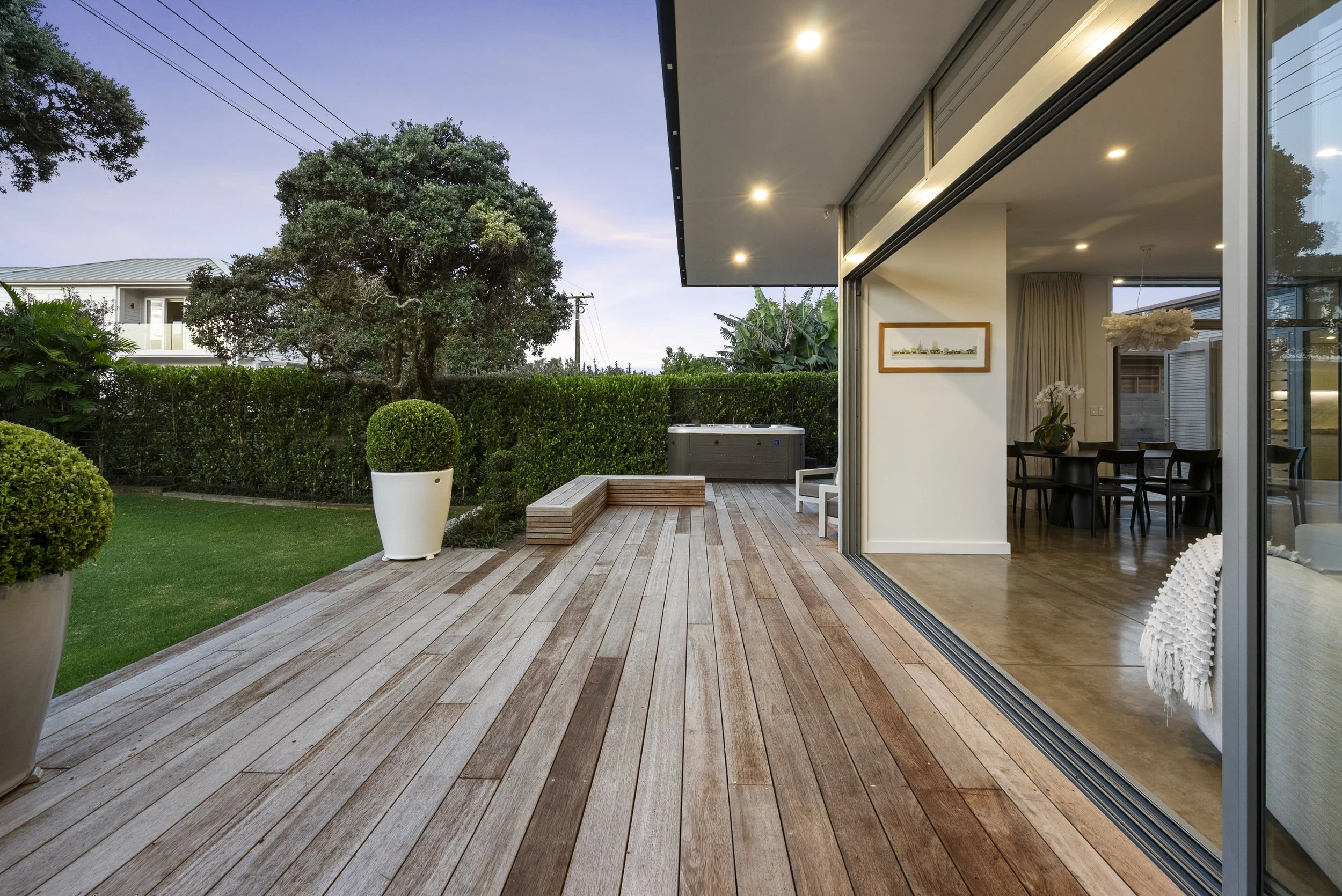 The approximately 352sqm residence unfolds with calm simplicity. Living spaces connect seamlessly to the outdoors, where around 150sqm of decking captures the surrounding views and provides multiple settings for entertaining or quiet retreat. Accommodation includes a two to three bedroom main residence alongside a separate studio, offering flexibility for guests, creative work, or private retreat.