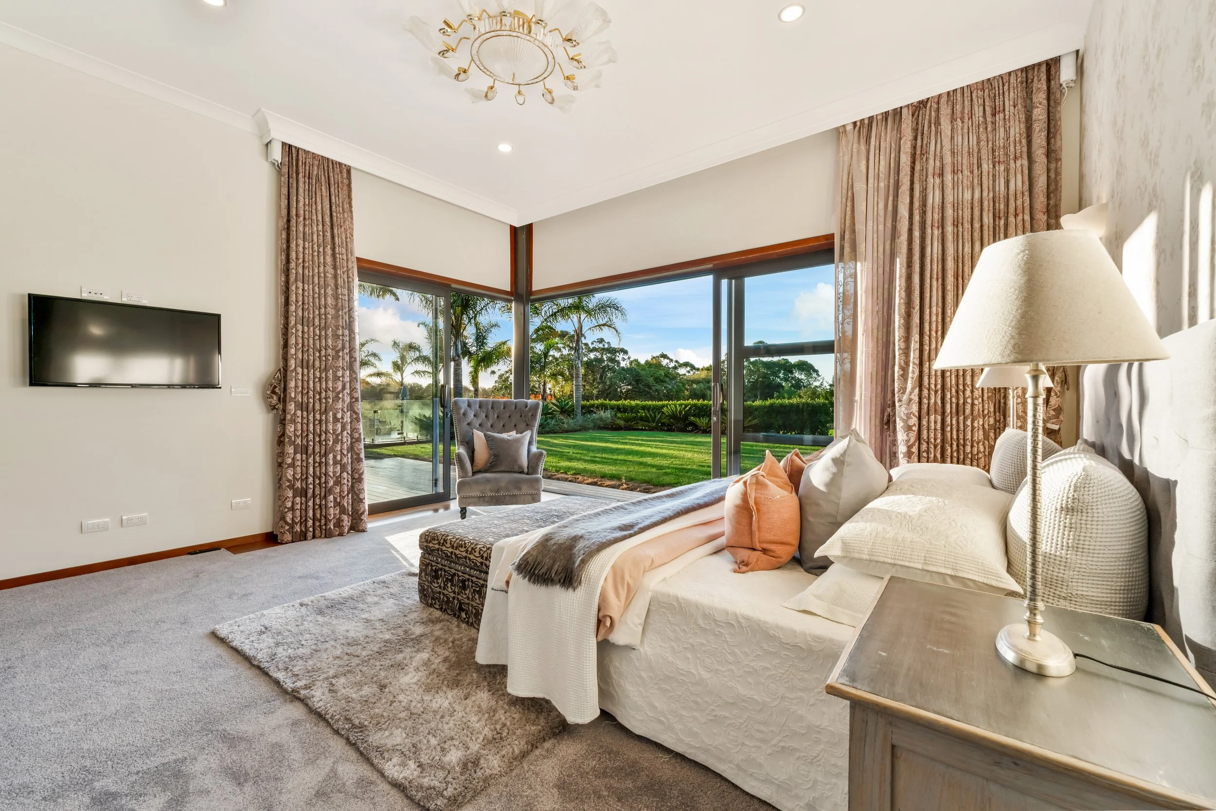 The grounds further reinforce the estate’s sense of sanctuary. Expansive lawns, mature landscaping, and a resort-style pool and spa create an environment designed for relaxation, privacy, and gathering. Multiple outdoor entertaining zones flow seamlessly from the living spaces, providing a setting equally suited to quiet family life or hosting on a grand scale. A comprehensive sustainability suite adds another layer of long-term resilience and independence, including solar power, on-site water supply, established orchards, and productive vegetable gardens.