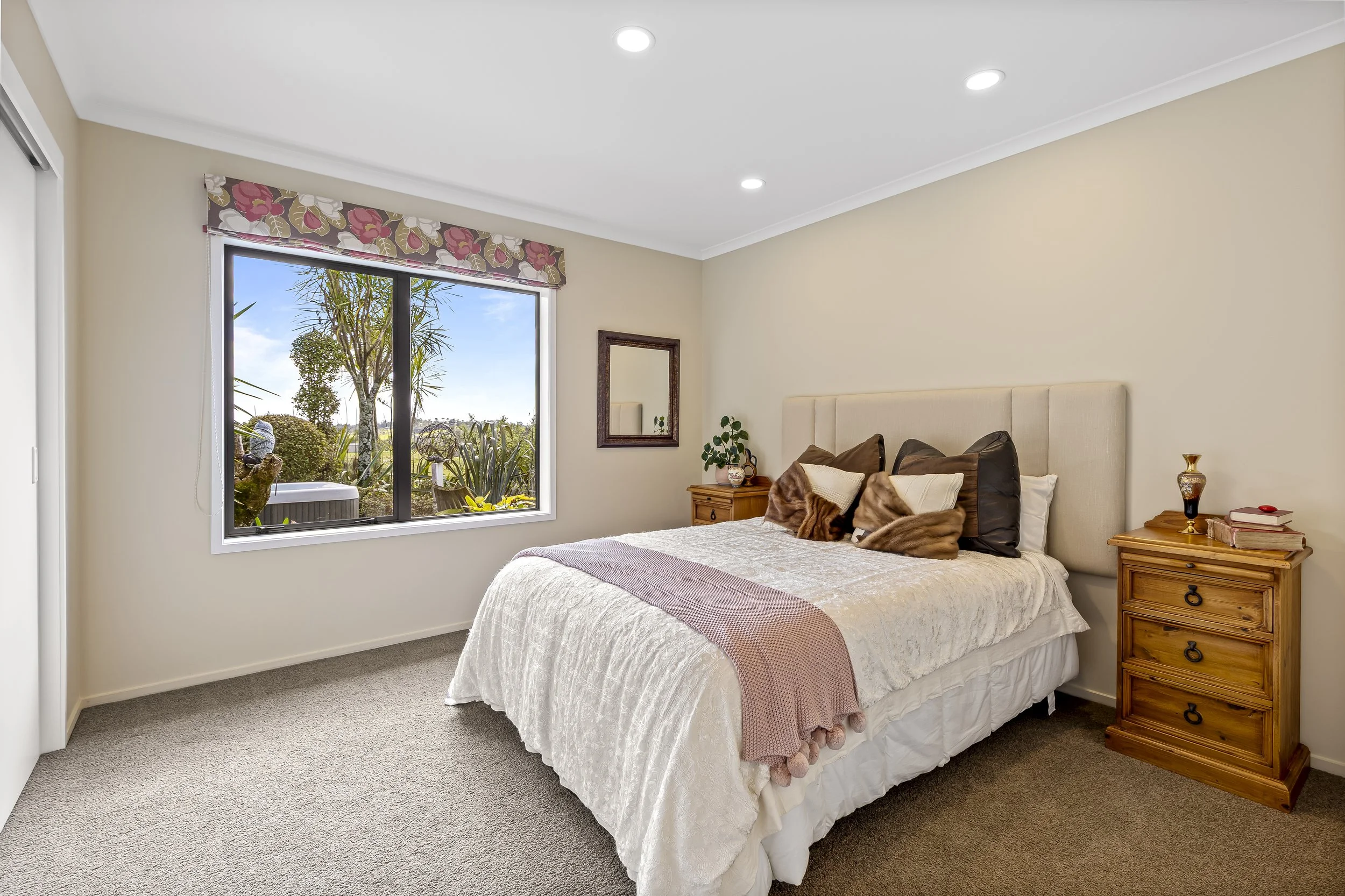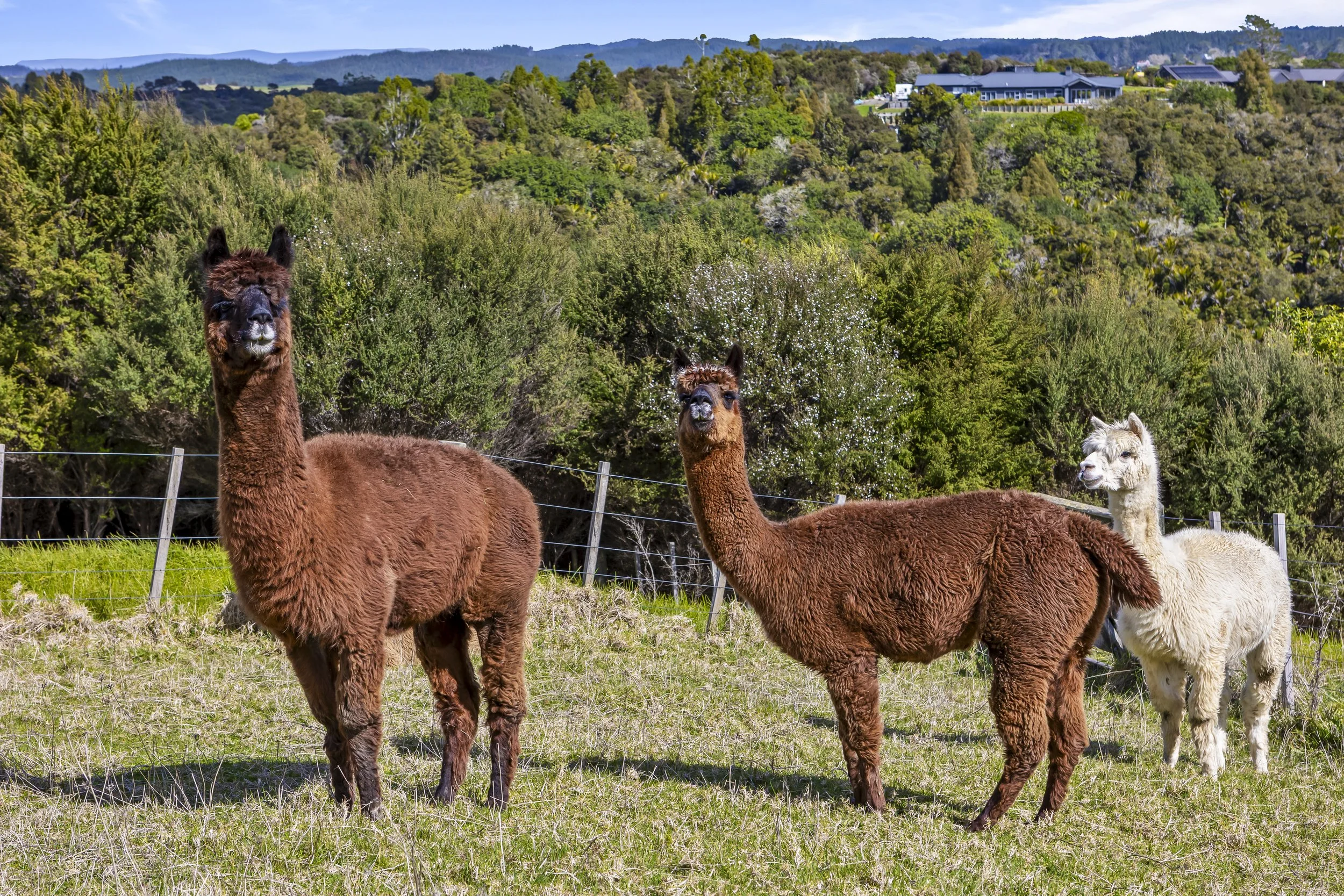 Elevated and private, this property boasts stunning views across Dairy Flat’s rolling hills. The current owners’ alpacas have thrived on this versatile land, perfect for those seeking space for animals, hobbies, or simply to soak in the peaceful surroundings.
