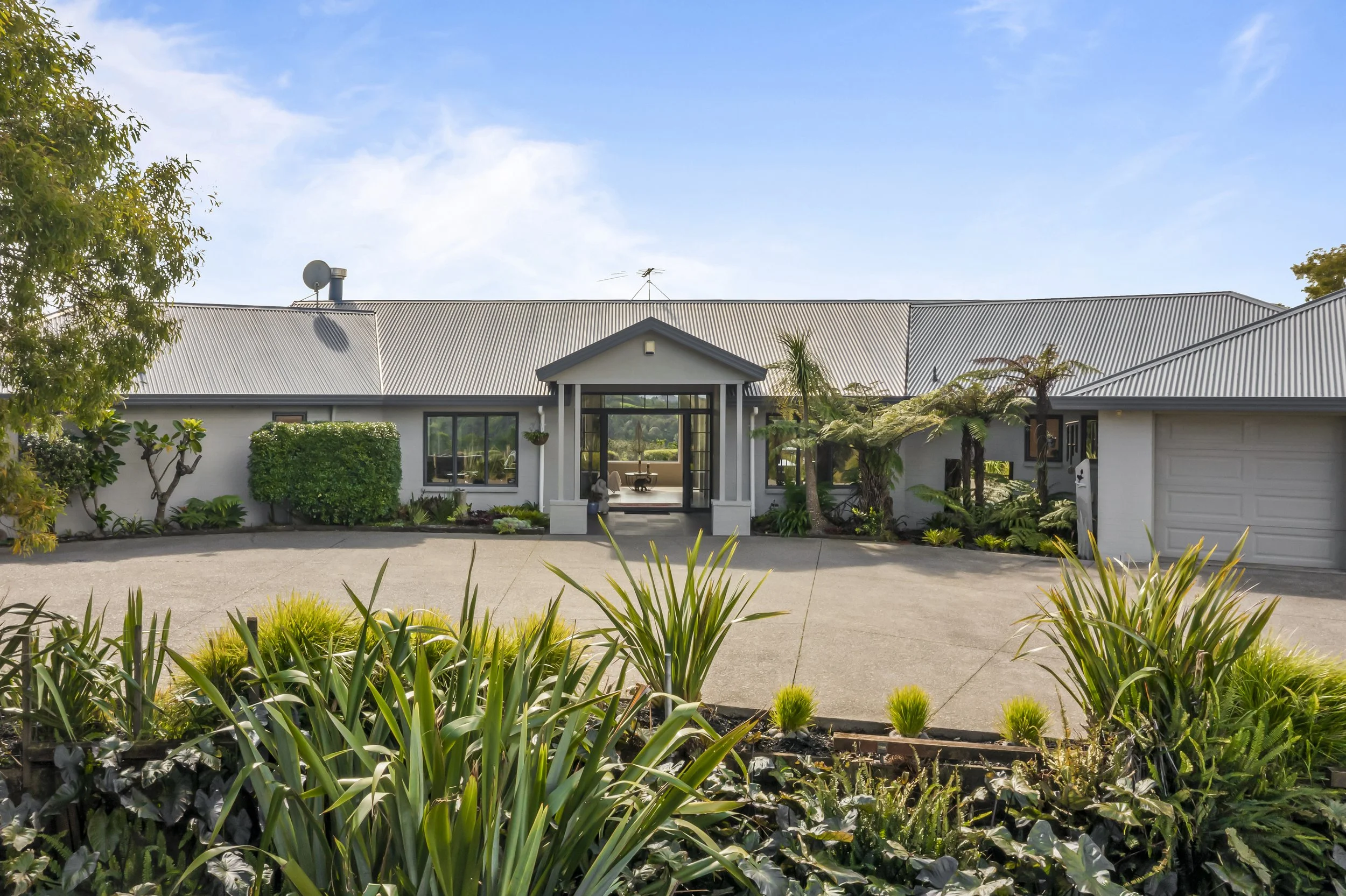 Nestled in the serene and picturesque landscape of Dairy Flat, this expansive 275sqm single-level family home at 77 Tender Road offers an idyllic blend of rural tranquility and modern convenience. Set on a sprawling 3.78 hectares of native bush and lush paddocks, this north-facing retreat captures all-day sun and breathtaking sunsets, creating a magical backdrop for family living.